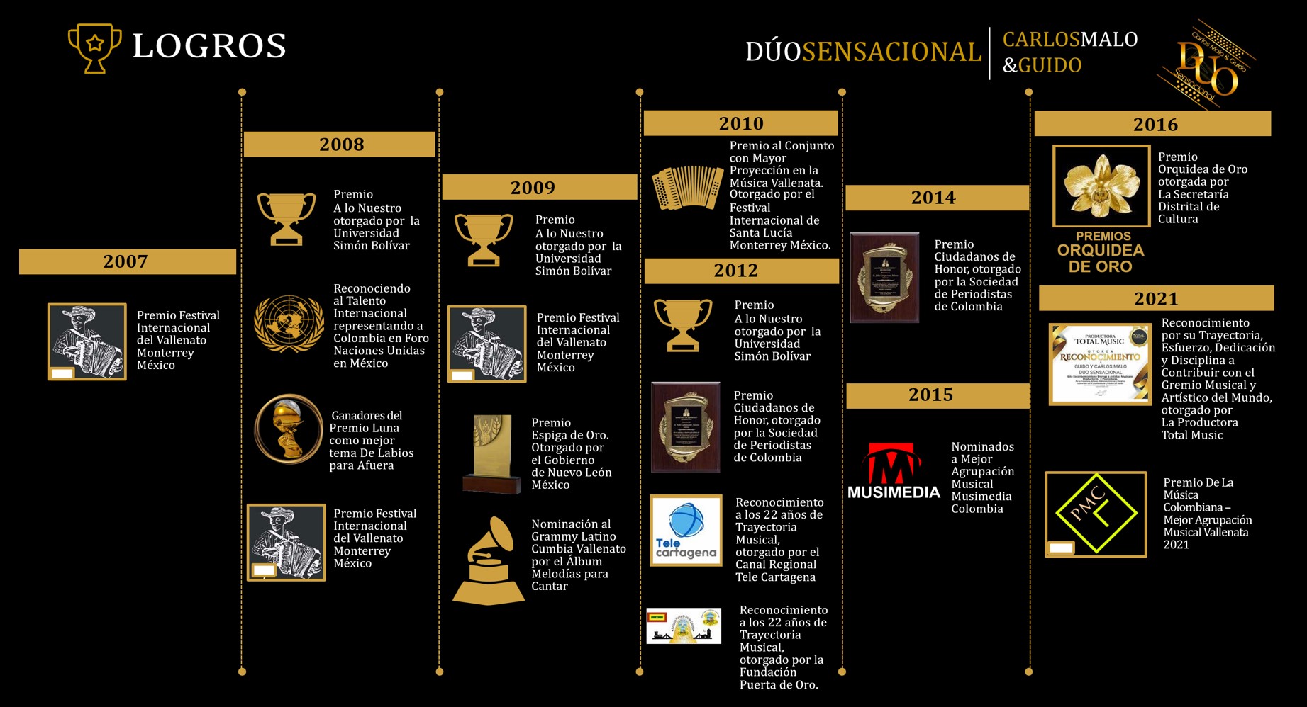 Ha sido una titánica carrera y a través de muchos años la disciplina, las ganas, el respeto y profesionalismo a entregado a este Dúo Sensacional muchos éxitos y en este nuevo año aspiramos a seguir consiguiendo objetivos muchos más logros para seguir creciendo por ustedes y para ustedes.