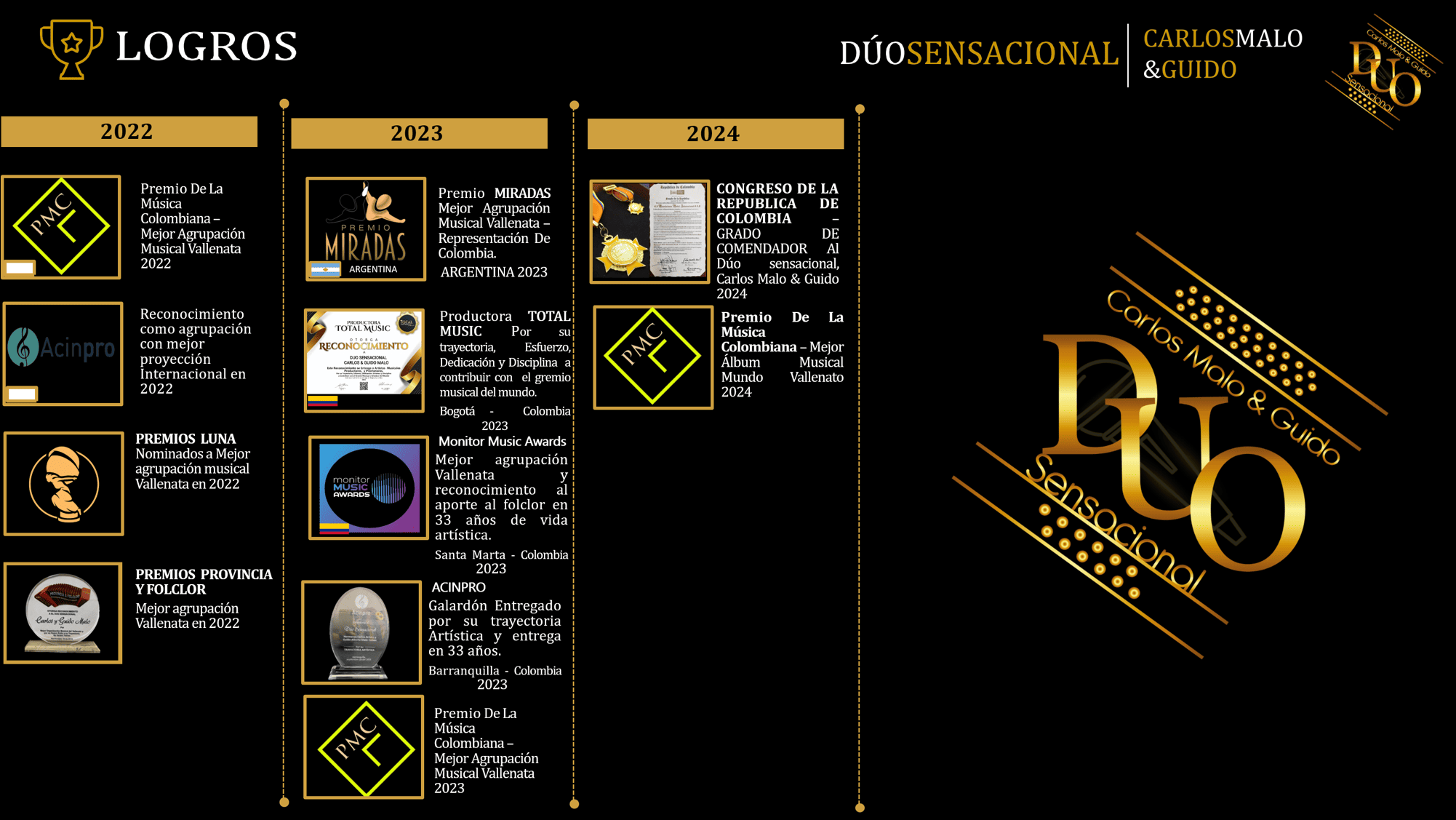 Ha sido una titánica carrera y a través de muchos años la disciplina, las ganas, el respeto y profesionalismo a entregado a este Dúo Sensacional muchos éxitos y en este nuevo año aspiramos a seguir consiguiendo objetivos muchos más logros para seguir creciendo por ustedes y para ustedes.